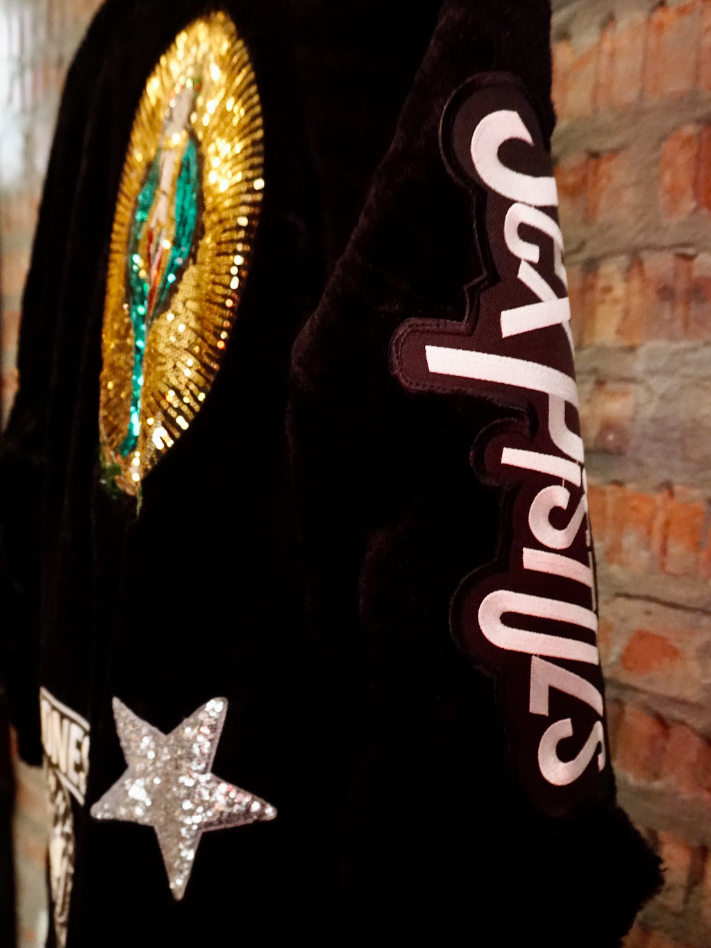 The chosen patches underline the cut and colour of the luxurious garment. You make a statement wearing it, regardless of your outfit underneath. It's a must in every conscious and brave fashion closet.
