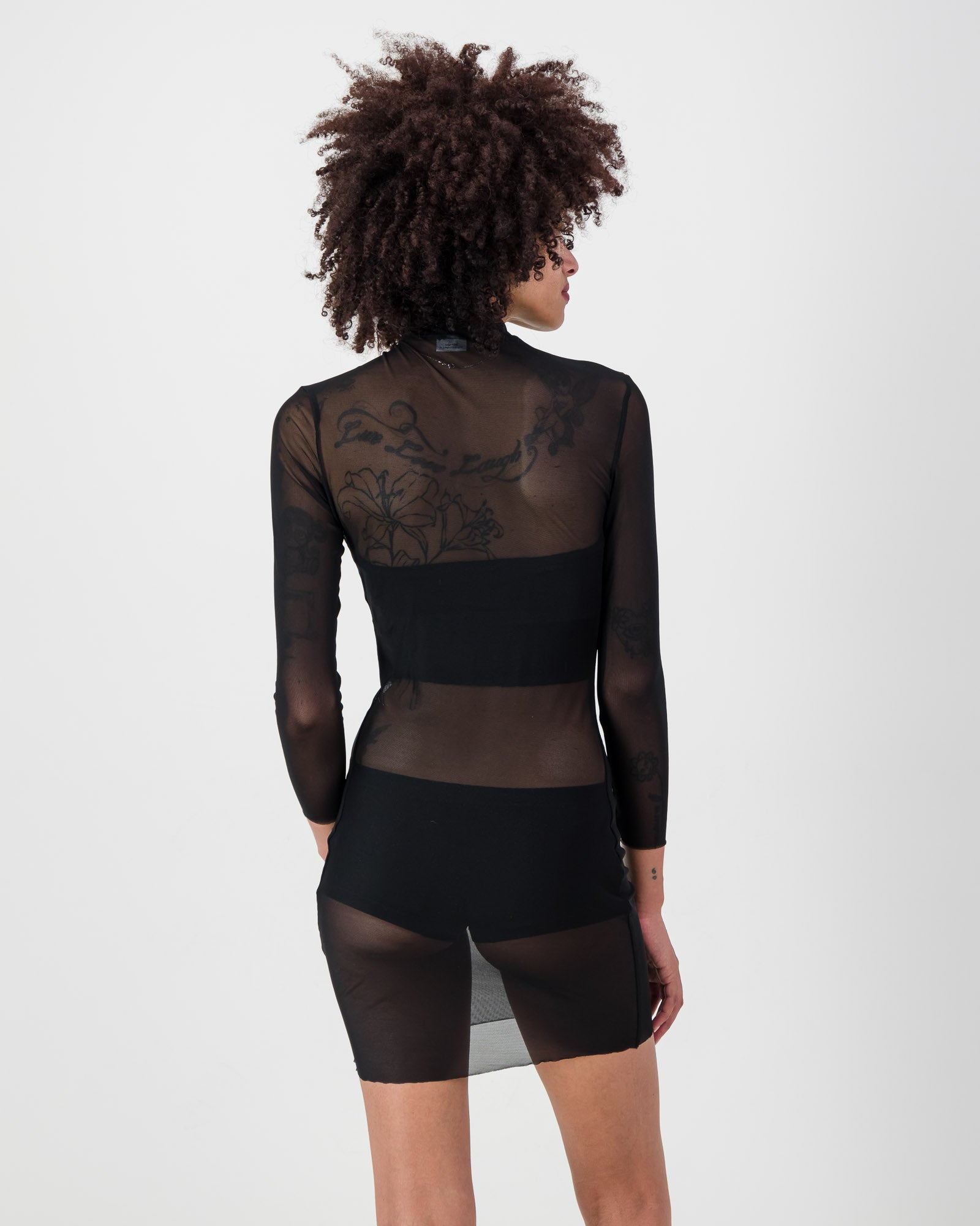 This mesh dress is a sustainable fashion basic which you can combine as a dress top, with pants or a skirt underneath etc. Made from quality excess mesh fabric it's perfect for a special outing and also elevates your daily wardrobe in a very unique way. The dress comes with a sequins heart patch on the chest and is made with love in Cape Town.