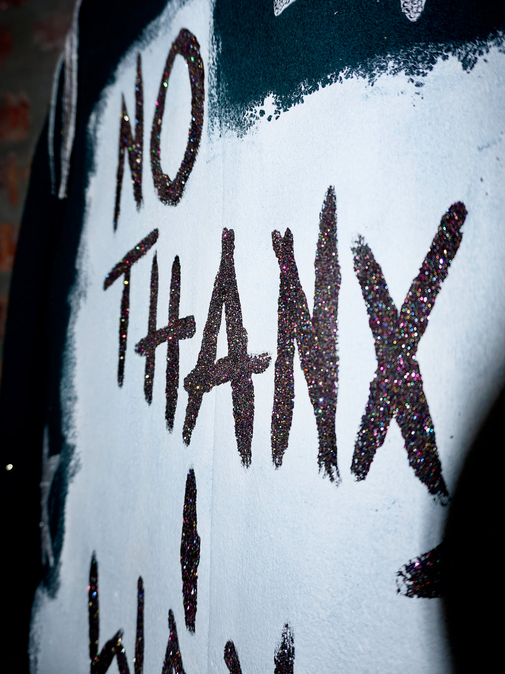The stars, shoulder embellishments and tassels underline the cut and colour of the luxurious garment. Painted letters on back side of the garment got an eco friendly glitter finish. You make a statement wearing it, regardless of your outfit underneath. It's a must in every conscious and brave fashion closet.
